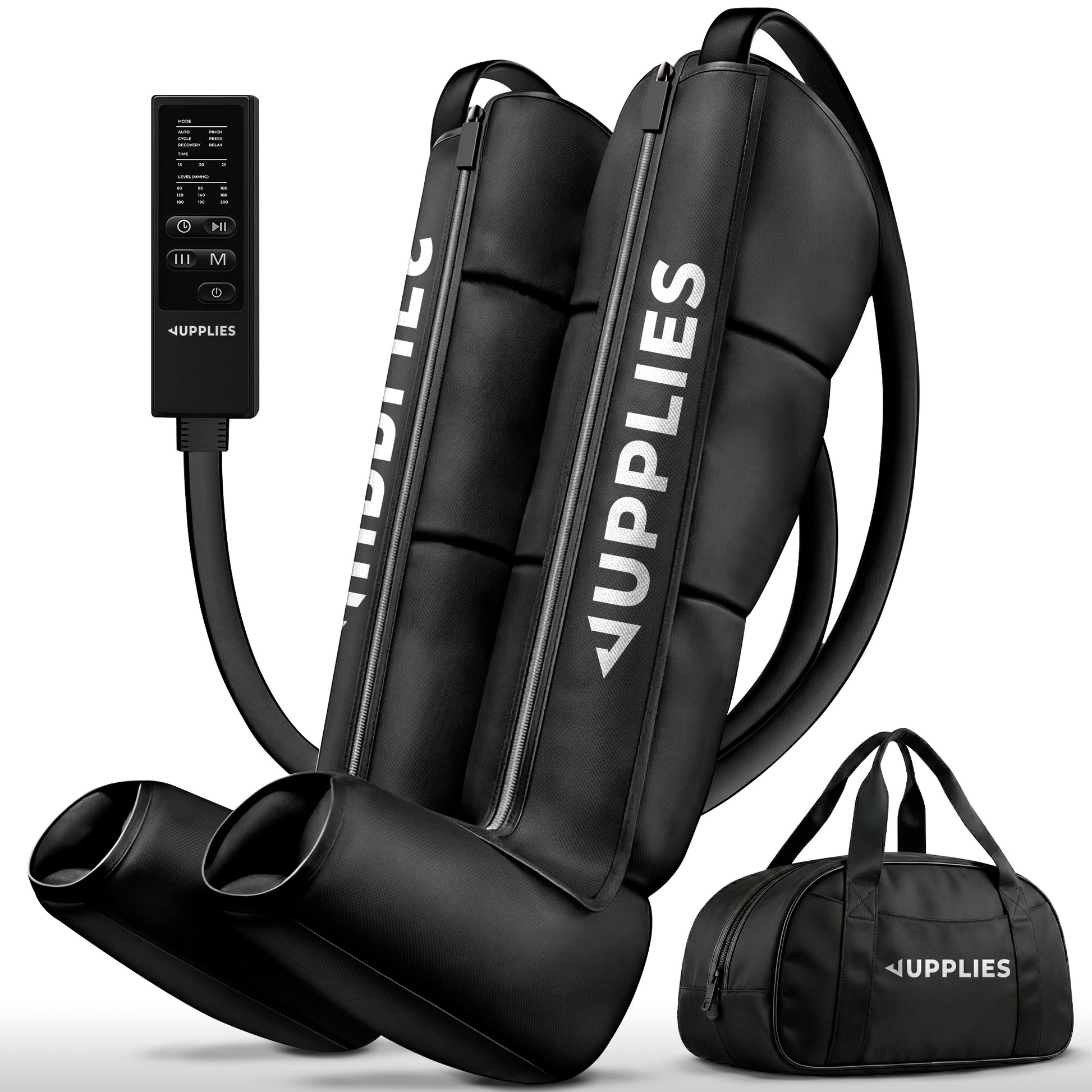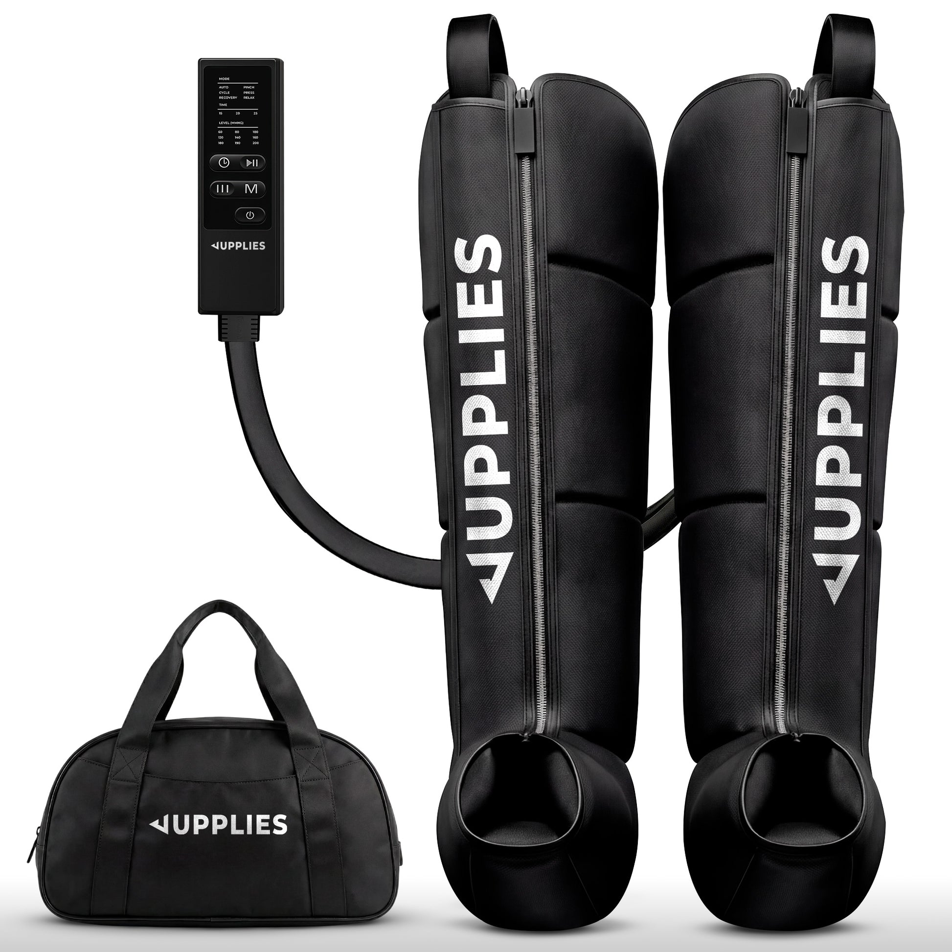 El set profesional de presoterapia JUPPLIES utiliza compresión de aire secuencial para estimular la circulación, reducir la sensación de piernas cansadas y favorecer la recuperación muscular.