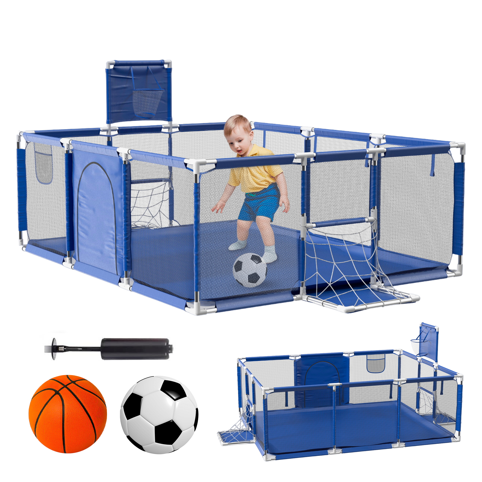Parque Infantil con Canasta y Portería para bebes con Alfombra y Pelotas